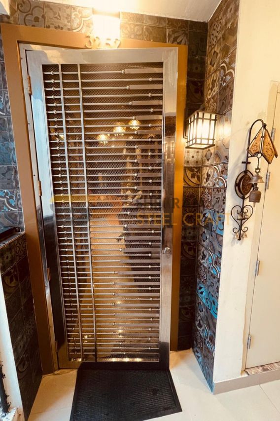 If you are looking for a strong and stylish safety door, some of the pictures shared here of steel safety door designs available with us. We manufacture these doors using the best manufacturing practices. These doors provide utmost, long-term security and an attractive look to the entrance door. Check out our range of SS Safety Doors in a diverse range of textures, finishes, colours, and decorative raised designs. We provide these doors in swing, sliding, and hinged options in four door, triple, double, and single doors.
